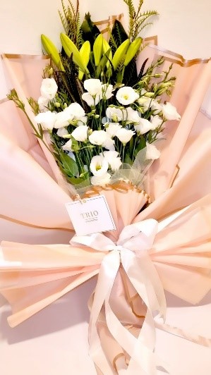 זר פינוק- זר כולל ליליות וליזיאנטוסים